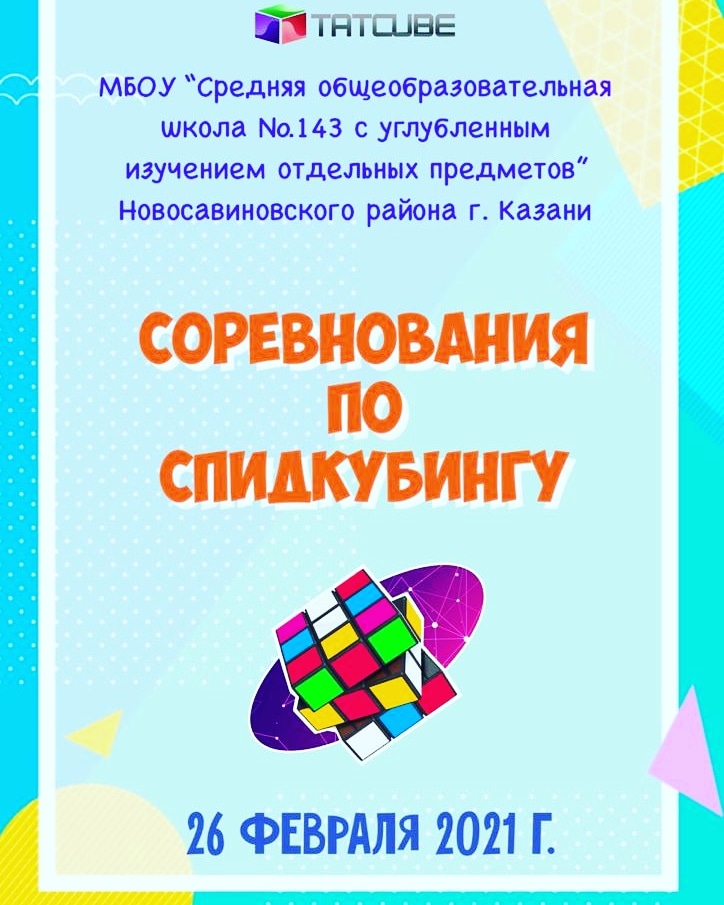В нашей школе 26 февраля 2021 года среди 1-8 классов пройдут "Соревнования по спидкубингу".