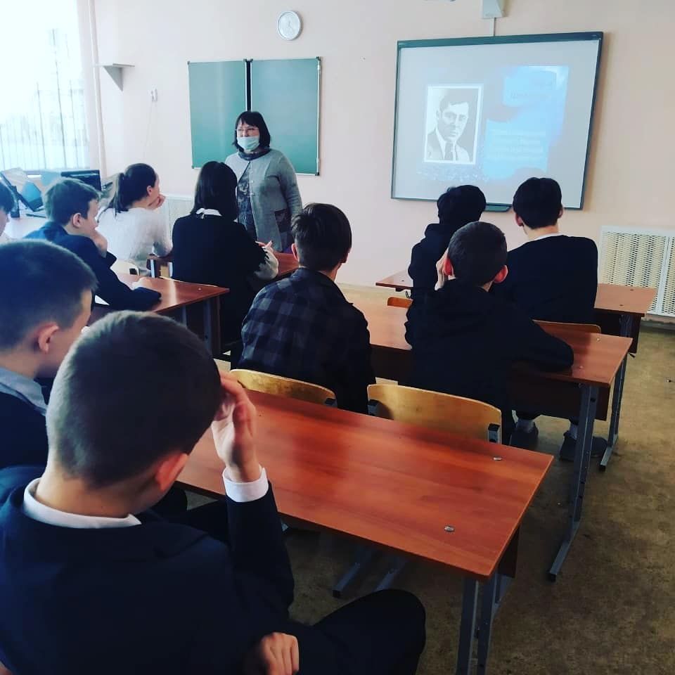Работниками Детской Республиканской библиотеки было проведено мероприятие в 7 "А" классе, посвященное ко Дню рождения Мусы Джалиля.