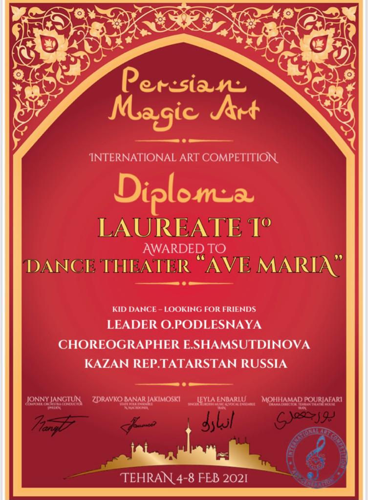 4-8 февраля Театр танца и эстетического развития «Ave Maria» принял участие в Международном конкурсе “Persian Magic Art”