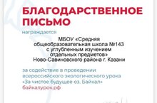 МБОУ «Средняя общеобразовательная школа №143 с углубленным изучением отдельных предметов» Ново-Савиновского района г. Казани - новости