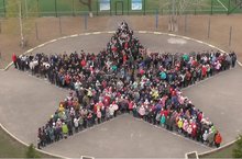 Вся наша школа в предверии Дня Победы участвовала во флешмобе "Звезда Победы" на школьном дворе.