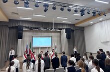 Утро понедельника в школе традиционно началось с торжественной линейки, церемонии выноса флагов и исполнения гимна РФ,РТ.