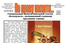 Редакция школьной газеты "Катапульта" выпустила специальный выпуск газеты, посвященный Дню Победы. В новом номере рассказы о ветеранах, патриотические акции, проводимые нашей школой и много интересного.