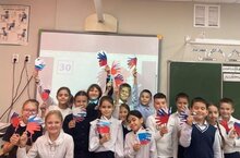 У ребят 3В класса прошёл мастер-класс. Ребята создали совместно с учителем Российский флаг как символ воссоединения.