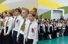 Сегодня по традиции в школе прошли 3 праздничные линейки для учащихся начального звена и 5-8,9-11 классов, посвященные Дню Победы.Уже с утра, несмотря на плохую погоду, в школе чувствовалась особая торжественность. Все ребята в парадной форме, на груди у педагогов и учеников - георгиевские ленточки.