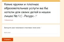 Для планирования организации платных образовательных услуг на 2020-2021 учебный год предлагается заполнить небольшую форму , ответив на вопрос: «Какие кружки и платные образовательные услуги вы бы хотели для своих детей в лицее №146 «Ресурс»?»