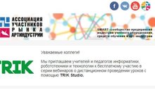 Вебинары организует команда проекта ТРИК. Мы производим конструктор для занятий робототехникой и технологией, а также разрабатываем бесплатную среду TRIK Studio c режимом двумерного моделирования для программирования робототехнических платформ ТРИК, Lego EV3/NXT, Geoscan Pioneer.