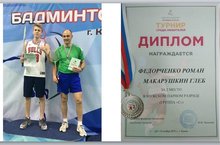 Поздравляем преподавателя физической культуры Федорченко Романа Вячеславовича и ученика 11В класса Макарушкина Глеба, занявших 2 место в мужском парном разряде республиканского бадминтонного турнира среди любителей.