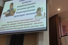 Об основных подходах к формированию культуры правильного питания обучающихся рассказала начальник отдела образования детей Министерства образования и науки РТ Жанна Ваисовна Соркина, презентацию «Влияние правильного питания на здоровье и успеваемость школьника » провела профессор кафедры общей гигиены Казанской государственной медицинской академии Фролова Оксана Александровна, автор программы «Разговор о правильном питании», старший научный сотрудник Института возрастной физиологии РАО Макеева Александра Германовна сделала акцент на цифровых ресурсах реализации здоровьесберегающей программы. Перед заместителями директоров по воспитательной работе, ответственными за питание в образовательных организациях города и республики выступила Латышева Галина Геннадьевна, начальник отдела образования по Авиастроительному и Ново-Савиновскому районам, она подчеркнула важность реализации программы «Разговор о правильном питании» в достижении качественных результатов управления процессом школьного питания. Логистикой организации питания в лицее 146 и опытом работы по проекту с коллегами поделилась заместитель директора Константинова Ольга Николаевна. Про формы работы с детьми и родителями в рамках программы рассказала руководитель 2А класса Камалова Альбина Наилевна.