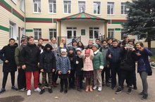 26 сентября 2019 года трудовой десант учеников 3В, 7Б, 8Б, 8Д и 11 классов «высадился» на территории Республиканского Дома ребёнка специализированного. Традиционно ребята оказали Дому ребёнка осеннюю помощь в уборке опавшей листвы.
