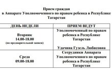 Прием граждан в Аппарате Уполномоченного по правам ребенка в Республике Татарстан