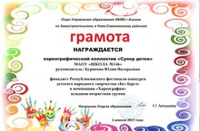 А также преподавателя хореографии Бурякову Юлию Валерьевну и классного руководителя Русакову Люцию Магсумовну с 3 местом в городском конкурсе «Без бергэ»