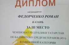 25 по 26 февраля 2017 года в Центре бадминтона Казани состоялся чемпионат Республики Татарстан по бадминтону среди ветеранов. Одним из его многочисленных участников стал преподаватель физической культуры нашей школы Федорченко Роман Вячеславович. Мы поздравляем Романа Вячеславовича, занявшего в упорных поединках с соперниками 3 место!