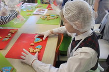 Ученики начальных классов раскатывали тесто и вырезали из него забавные фигурки.