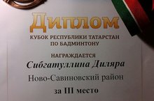 И помогла ей в этом ученица 7В класса Сибгатуллина Диляра, которая, выступая за Ново-Савиновский район на Кубке Республики Татарстан по бадминтону, заняла 3 место в младшей возрастной группе! Диляра, ты молодец! Желаем тебе, проявляя волю к победе, подниматься на пьедестале всё выше и выше!