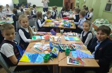 Мастер-класс изобразительного творчества прошёл сегодня в 1 «А» классе (руководитель Глызина О. А.). Ребята с большим удовольствием творили, создавая летние солнечные сюжеты!