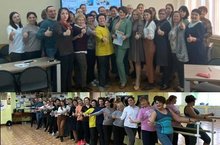 The internship ended no less positively. Our teacher Sadykova Regina Ranasovna conducted a dynamic warm-up for the guests, where everyone was able to"light up".