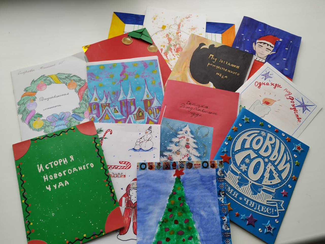 На предыдущей неделе, ученики 5г, 6б и 8б классов на уроках родной литературы сочинили замечательные рождественские сказки и сами оформили книги. -