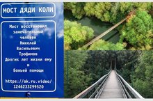Николай Васильевич прославился тем, что в одиночку восстановил заброшенный подвесной мост. Сам он вспоминает как к нему пришла идея отремонтировать мост: «Однажды прогуливался в районе моста, смотрю – мужчина в форме ходит там, что-то фотографирует, записывает. Я говорю: «Снимайте-снимайте, покажете, что с мостом стало». А он ответил, что какой-то человек заявление подал, чтобы мост на металлолом демонтировать. Тут я ему сказал, что лучше я его сам восстановлю, зачем ломать. И вот так и началось. Пошел в администрацию, показал фотографии и говорю им: «Ну а что если я одну доску заменю – это преступление? А если десять? А если все? Дадите вы мне денег на материалы или нет, я все равно сделаю».