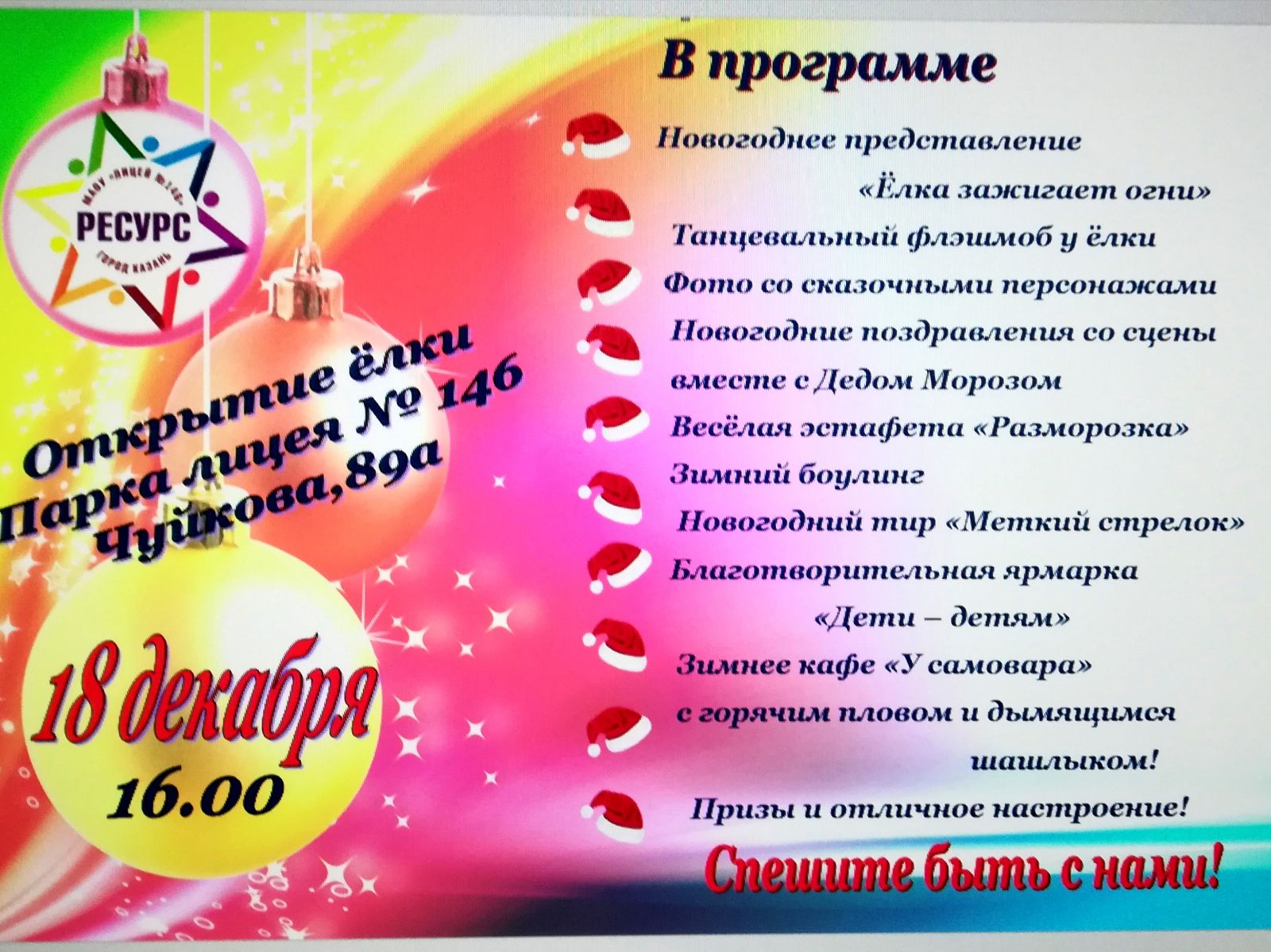 Опубликовано: 15.12.2020За ощущениями нового года встречей с Дедом Морозом, веселым хороводом, играми, шутками, хорошим настроением, ярморочными товарами, горячей выпечкой, пловом, шашлыком, сладкими призами – спешите 18 декабря в 16.00 в парк лицея 146!