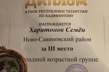 Что такое спорт? Для некоторых спорт - это ежедневные тренировки на пределе человеческих возможностей,для других спорт это развлечение,хобби. Но лишь для избранных спорт - это ЖИЗНЬ!!! Так и для ученика Лицея №177, Харитонова Семена спорт не на последнем месте, совсем недавно он стал обладателем 3 призового места в соревнованиях на кубок Республики Татарстан по бадминтону! С чем мы его сердечно поздравляем!