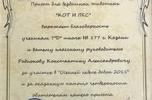 Благодарность от приюта "Кот и пес" 16.12.2015