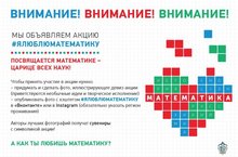 с 30 ноября по 30 декабря для школьников и студентов России пройдет Всероссийская акция "Я люблю математику". Интерактивный проект в рамках социальных сетей "instagram" и "Вконтакте".
