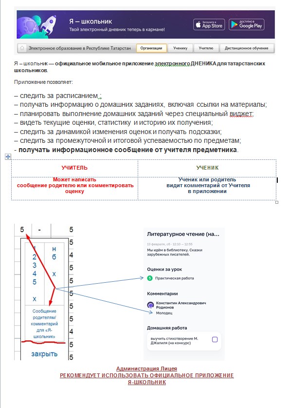 Администрация Лицея рекомендует использовать официальное приложение Электронного дневника - Я-ШКОЛЬНИК .