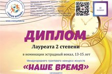 Поздравляем солистку вокальной студии " Шатлык" Ганееву Сабину с победой в Международном грантовым конкурсе современного искусства