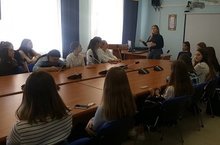 В рамках реализации программы "Здоровье и здоровый образ жизни" представитель НИИ гигиены и охраны здоровья детей и подростков А.А. Талан провела деловую игру с учашимися 7 классов "Азбука Здоровья"