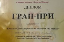 Сегодня ансамбль "Шатлык" получил высокую оценку московского жюри на конкурсе вокального мастерства " Путь к успеху" и стал лауреатом 1 степени, а солистка Гермашина Елизавета-лауреатом 3 степени.