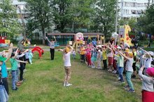 После завтрака все дети вышли на украшенную цветными флажками и шарами площадку, где их ждали развлечения.