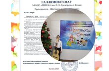 Дипломом Лауреата ll степени Открытого Республиканского конкурса юных исполнителей «Маленькая страна» награжден ученик класса Заслуженного работника культуры РТ Шестаковой Г.Р. - Галлямов Гумар!