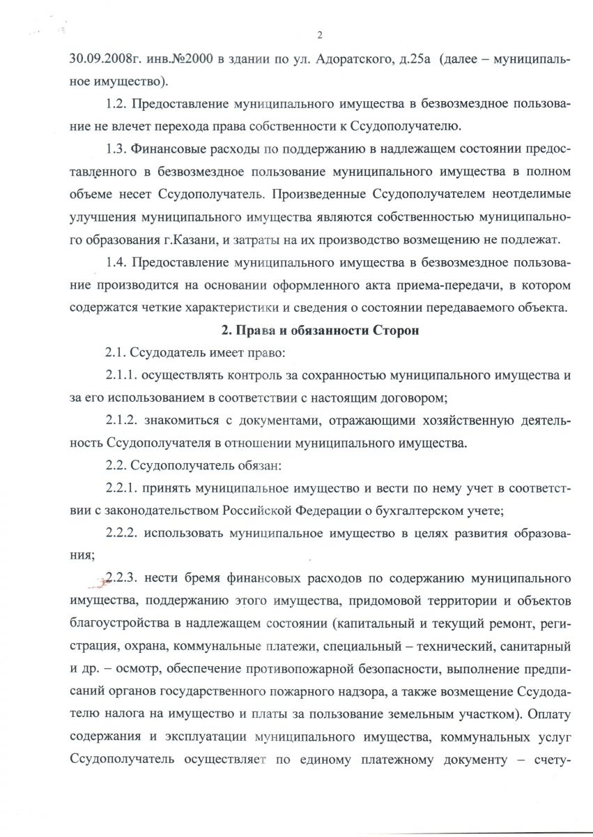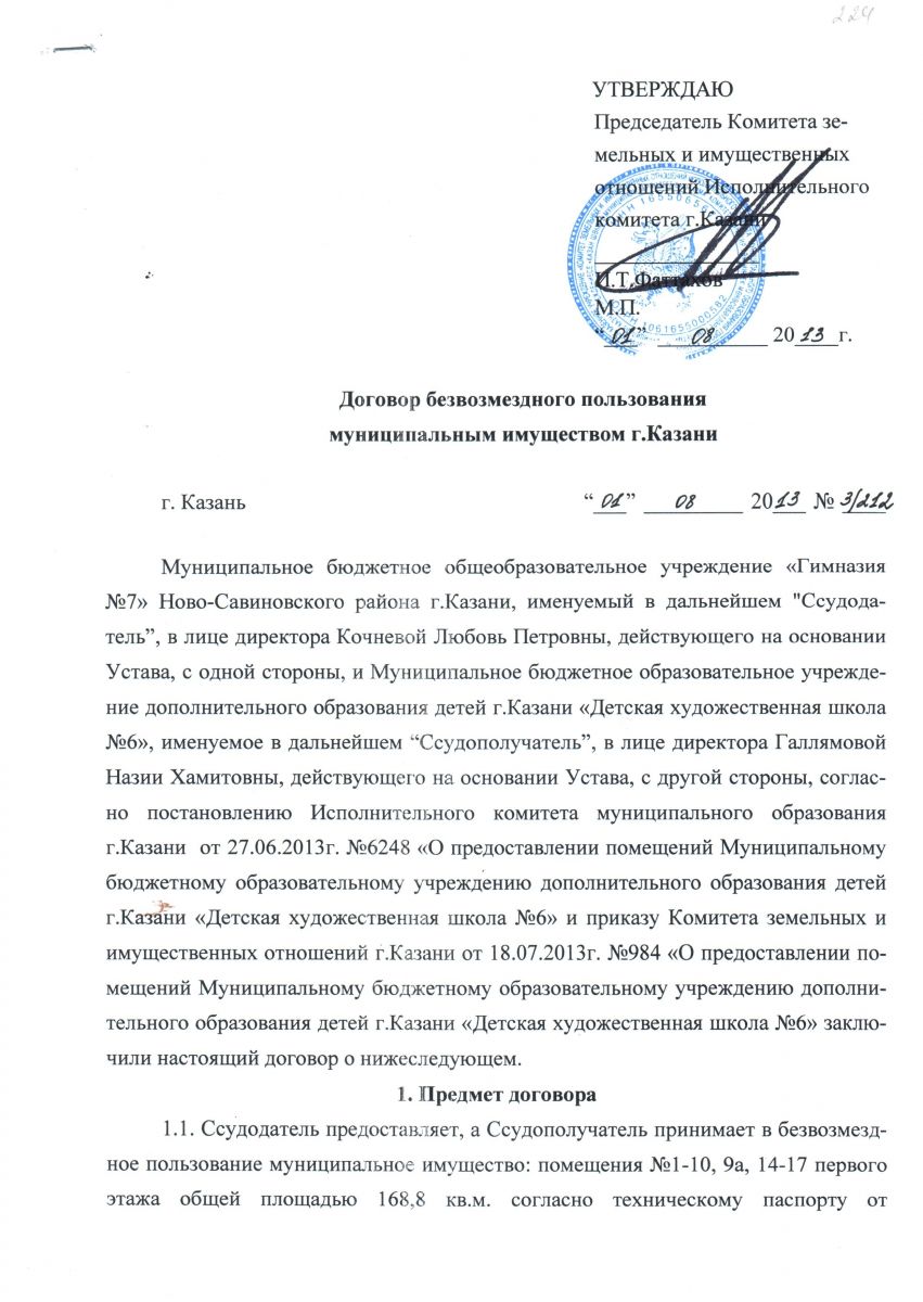 Договор безвозмездного пользования муниципальным имуществом г.Казани 1 стр.