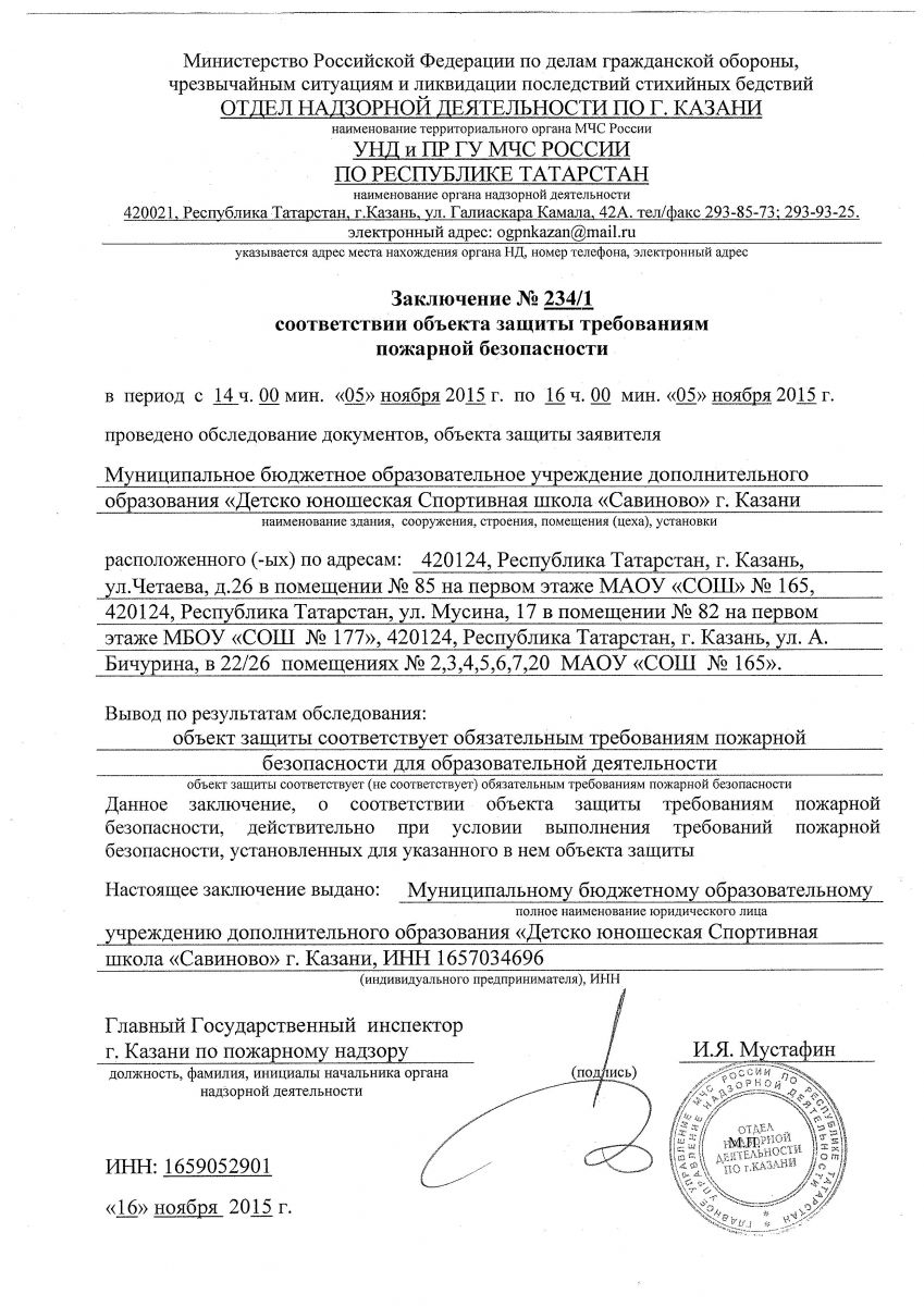 ЗАКЛЮЧЕНИЕ №234/1 СООТВЕТСТВИИ ОБЪЕКТА ЗАЩИТЫ ТРЕБОВАНИЯМ ПОЖАРНОЙ БЕЗОПАСНОСТИ.jpg