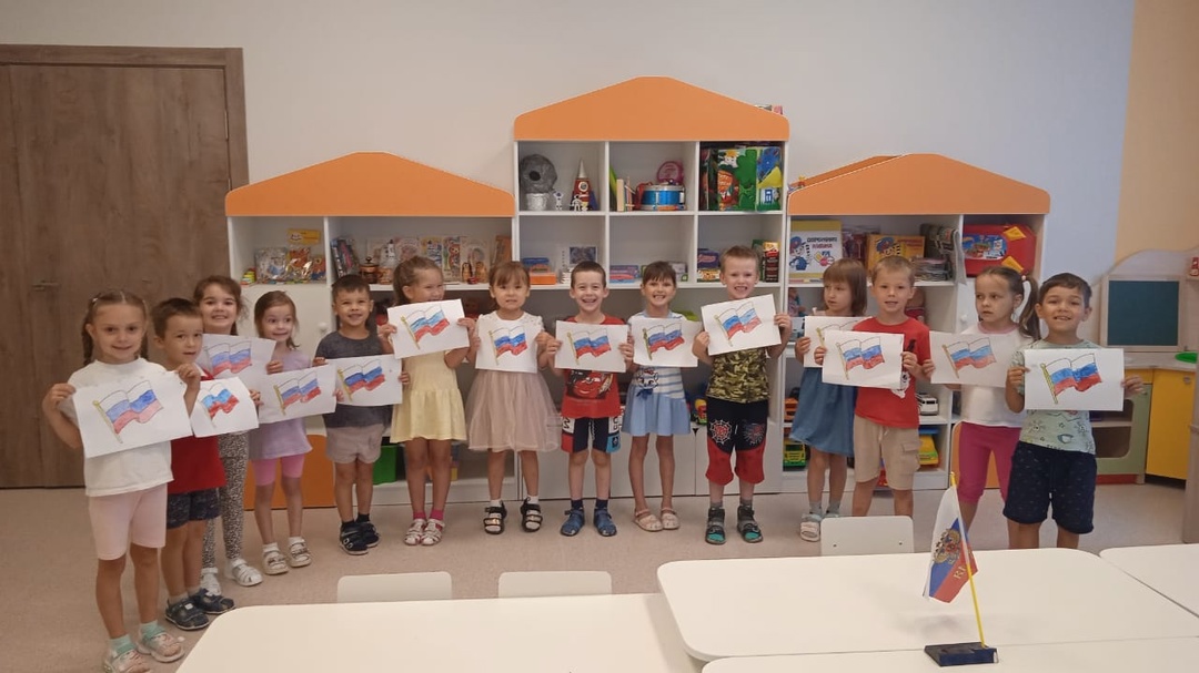 Малыши 3 и 4 групп сделали замечательную аппликацию, посвящённую Дню российского флага.