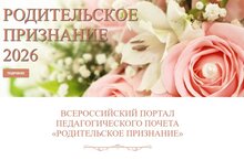Уважаемые родители, в преддверии международного женского дня 8 марта родителям школьников и дошкольников России предоставлено право лично или коллективно представить на Всероссийский портал педагогического почета «Родительское признание 2026» кандидатуру педагога, достойного, по мнению родителей, почетного статуса Номинанта ВПОИ «Родительское признание». Родители также могут опубликовать на официальном портале родительскоепризнание.рф поздравление и добрые слова педагогу. В разделе «Благодарность» все публикации полностью бесплатны. Все педагоги, представленные родителями как Номинанты, будут награждены Дипломом номинанта Всероссийской ПОИ «Родительское признание 2026». Подать кандидатуру педагога на Всероссийской портал почета просто: заполнив онлайн-форму на официальном сайте родительскоепризнание.рф в разделе «Номинанты». Номинанты и лауреаты 2018-2026 годов, подробная информация и вопросы на родительскоепризнание.рф.