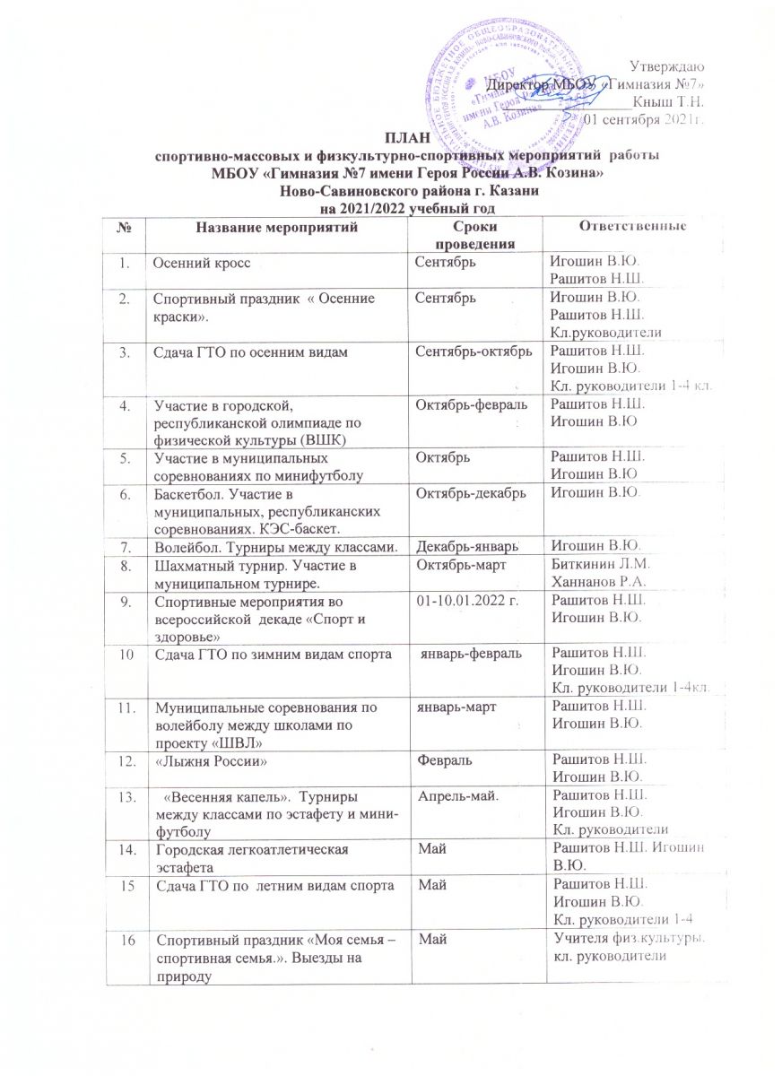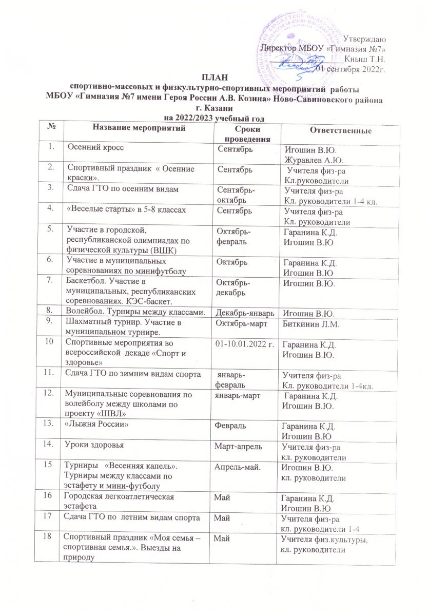 Календарный план спортивно-массовых мероприятий гимназии