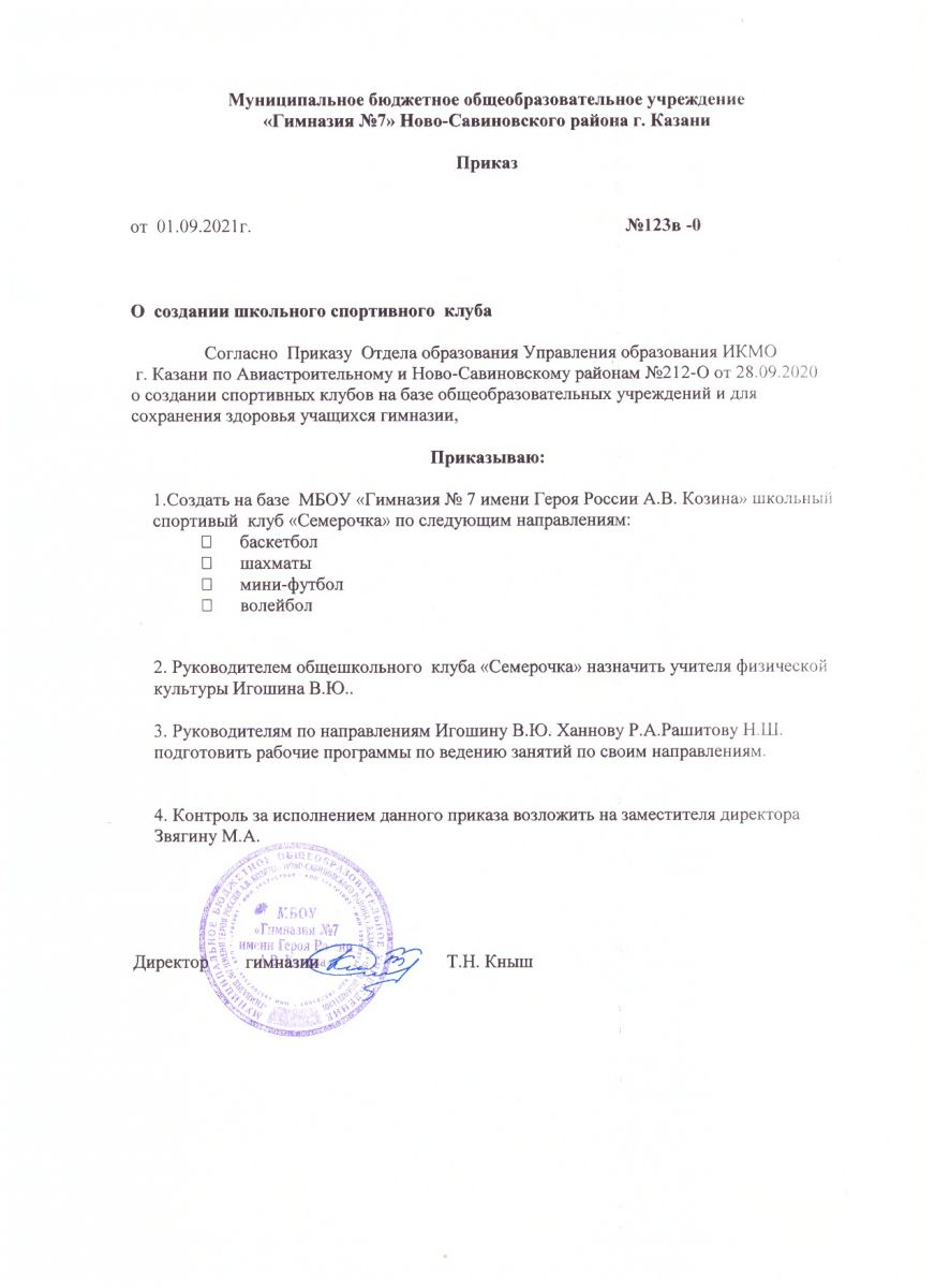 Приказ о создании спортивного клуба 2022г.