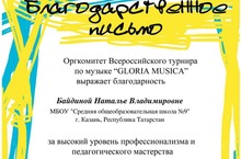 Со 2 по 12 декабря 2013 года Центр Арт-образования проводил Всероссийский дистанционный турнир по музыке «GLORIA MUSICA» для учащихся 2-9 классов.