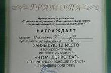 28 февраля 2012 года прошел Городской турнир интеллектуальных игр «Что? Где? Когда?» по теме «Науки юношей питают» в младшей подгруппе. Команда «Планета 9» МБОУ Школы № 9 заняла почетное 3 место.