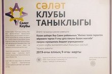 9марта наш школьный клуб "Сәләт" получил свидетельство