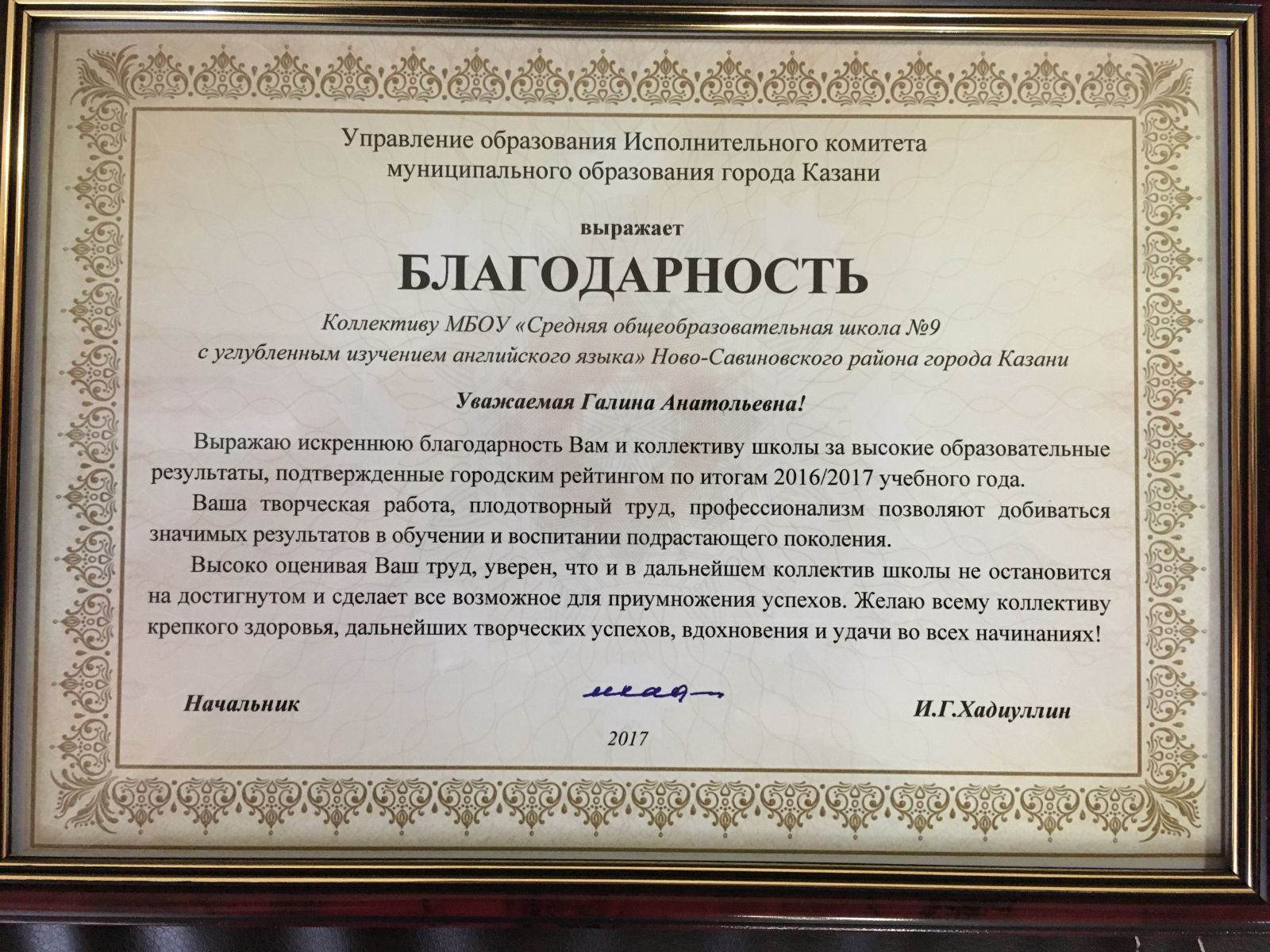 МБОУ «Средняя общеобразовательная школа № 9 с углубленным изучением английского языка» Ново-Савиновского района г.Казани - новости