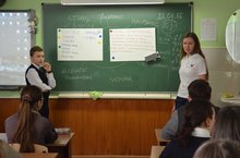 Учащимся 7 класса Зайнуллиной Ляйсан и Гумировой Ренате удалось почуствовать себя в роли учителя