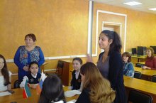Бүген безнең мәктәпкә Казан федераль университеты Филология һәм мәдәниятара багланышлар институты доценты, филология фәннәре кандидаты Нәбиуллина Гүзәл Әмир кызы һәм магистрант Юто Хишияма очрашуга килделәр.