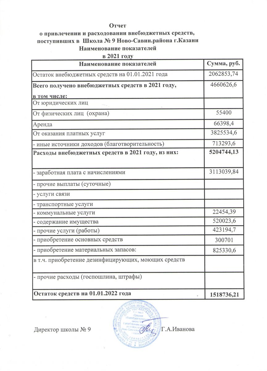 Отчет о привлечении и расходовании внебюджетных денежныех средств в 2021 году
