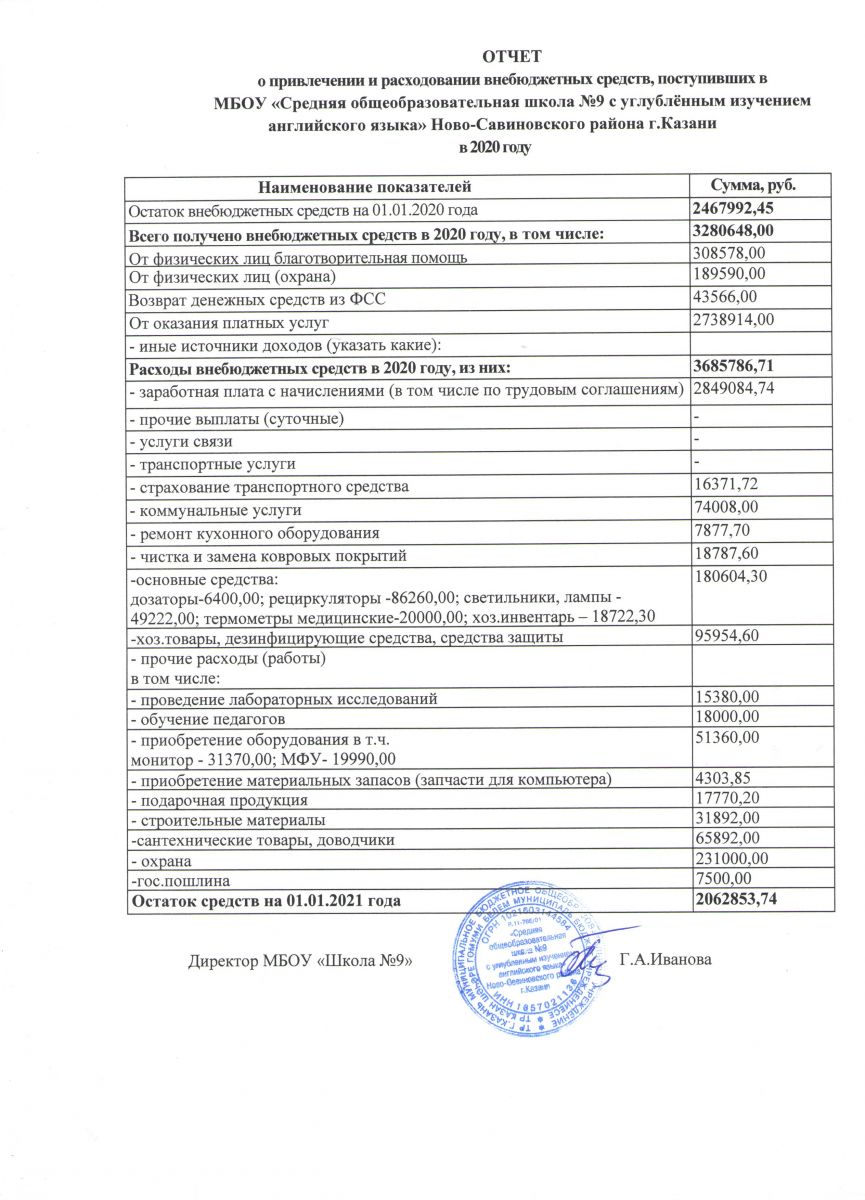 Отчет о привлечении и расходовании внебюджетных денежныех средств в 2020 году