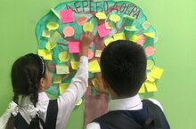 В рамках недели добра, в нашей гимназии появилось "Дерево Добра", на которое учащиеся прикрепляют листочки с добрыми пожеланиями одноклассникам, учителям и родителям.