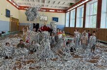 Сегодня для детей летнего пришкольного лагеря "Отражение" была организована фольгированная дискотека.