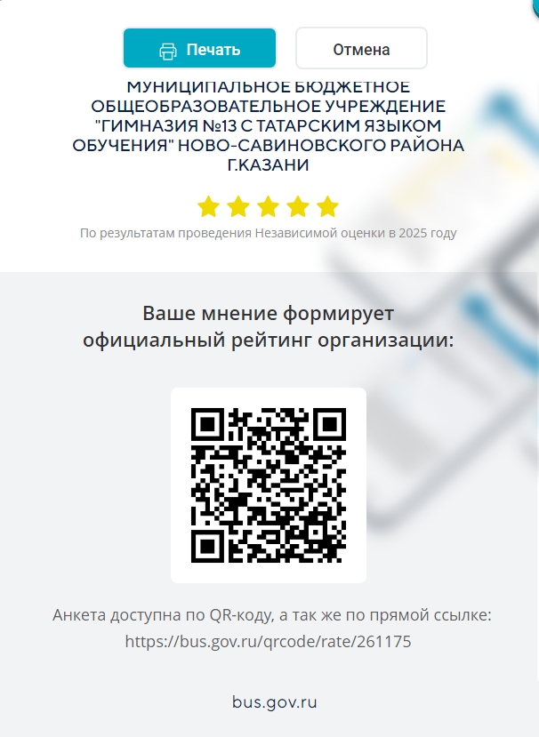 Муниципальное бюджетное общеобразовательное учреждение «Гимназия №13 с татарским языком обучения» Ново-Савиновского района г.Казани/ Казан шәһәре Яңа Савин районының "Татар телендә белем бирүче 13 нче гимназия" гомуми белем муниципаль бюджет учреждениесе